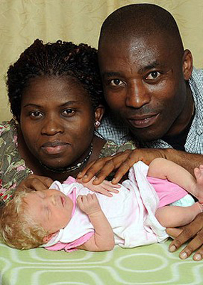 英国媒体20日报道,一对英国黑人夫妇近日生下一个金发蓝眼的白皮肤女儿,不仅让这对父母大惑不解,也让遗传学家十分困惑。
