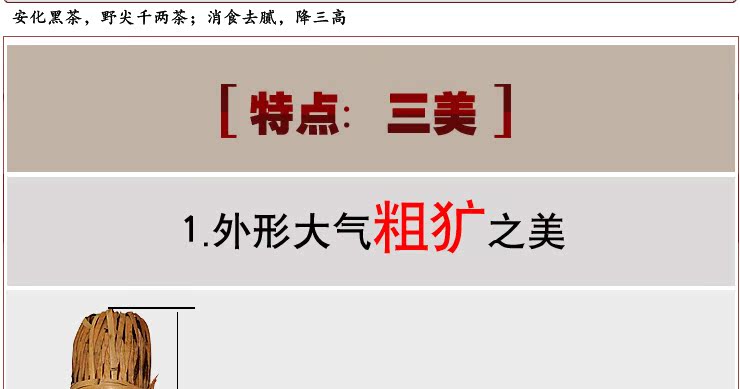 8、黑茶饮后不会引起兴奋,不影响睡眠 千两颗粒茶是从为了方便买家购买,从一整柱千两茶机械切取下来的。如果需要购买一整柱千两茶,可以点击以下链接购买。 http://item.taobao.com/auction/item_detail.htm?item_num_id=4685026641