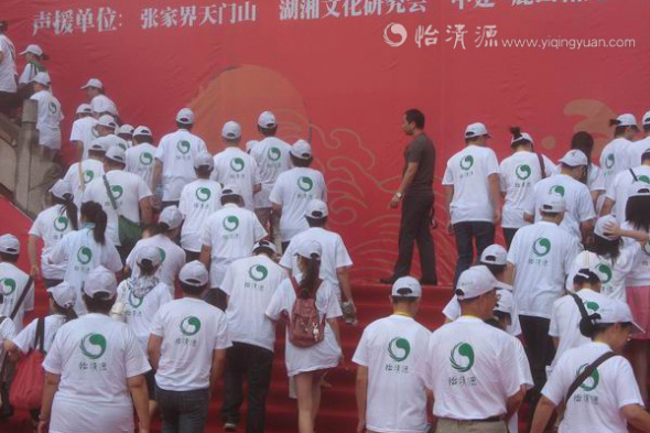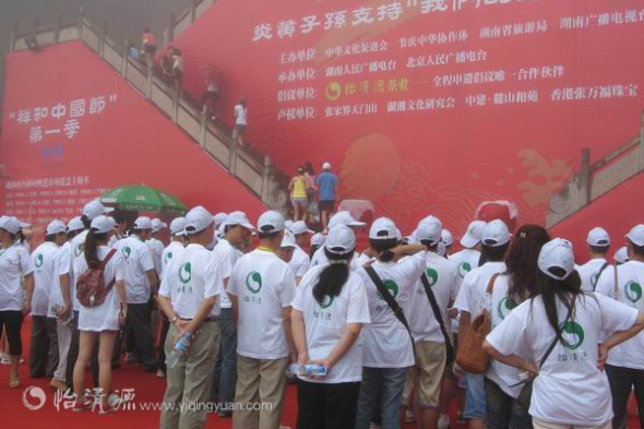 8月16日,七夕节,由中华文化促进会、湖南广电和北京广电主办,湖南怡清源茶业全程支持的“祥和中国节”第一季,“炎黄子孙支持‘我们的节日’申遗声援大会”活动,在张家界天门洞拉开大幕。怡清源工作人员与各界文化名流、五十六个民族代表、九十九队情侣代表,组成“申遗声援团”,为申遗助威。申遗声援团团长怡清源董事长简伯华在会上发表演讲。