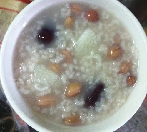 以前吧,早上就吃个包子什么的。现在我早上煮粥,而且我打算要经常变化样式。这几天煮花生红